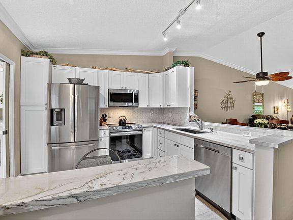 All great things point here at Huntington Pointe! Wonderfully private corner villa in the best section of the community! Beautifully updated! Two bed/ Two Bath with Garage! Highly sought after Northern exposure! Stainless steel appliances, Real Stone Quartzite countertops! Newer A/C! Enclosed lanai to relax and enjoy thoughtfully landscaped private back yard! (No neighbors in sight!) Walking distance from the satellite pool! Huntington Pointe features one of the most sought after clubhouses in south Florida! Newly renovated with full amenities! Including: Cafe, Indoor pool, theater, fitness center, pickleball and much more! Events coordinator on site for entertainment and social events walking distance from your front door! This is 55+ living at it's finest!