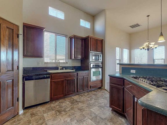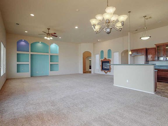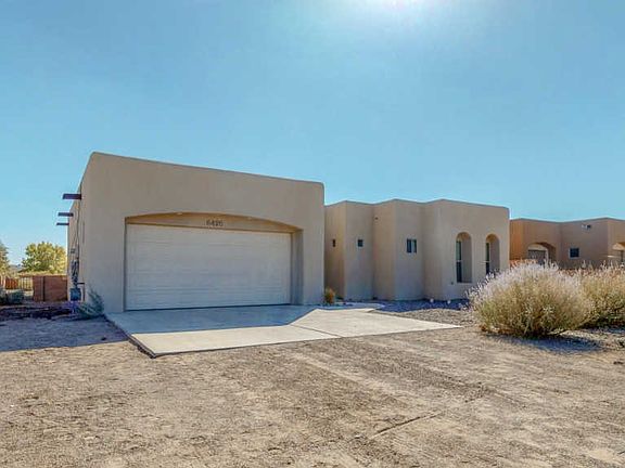 Amazing views, One story, 4 bed rooms, 1/2 acre of land, almost 3000 square feet & a 3 car garage in Rio Rancho on a paved road. Solid wood doors, large open floor plan, island with seating for entire family. Covered patio with outdoor fireplace & amazing mountain views. Close to shopping, restaurants, close access to highways yet quite & peaceful. Being sold AS IS.