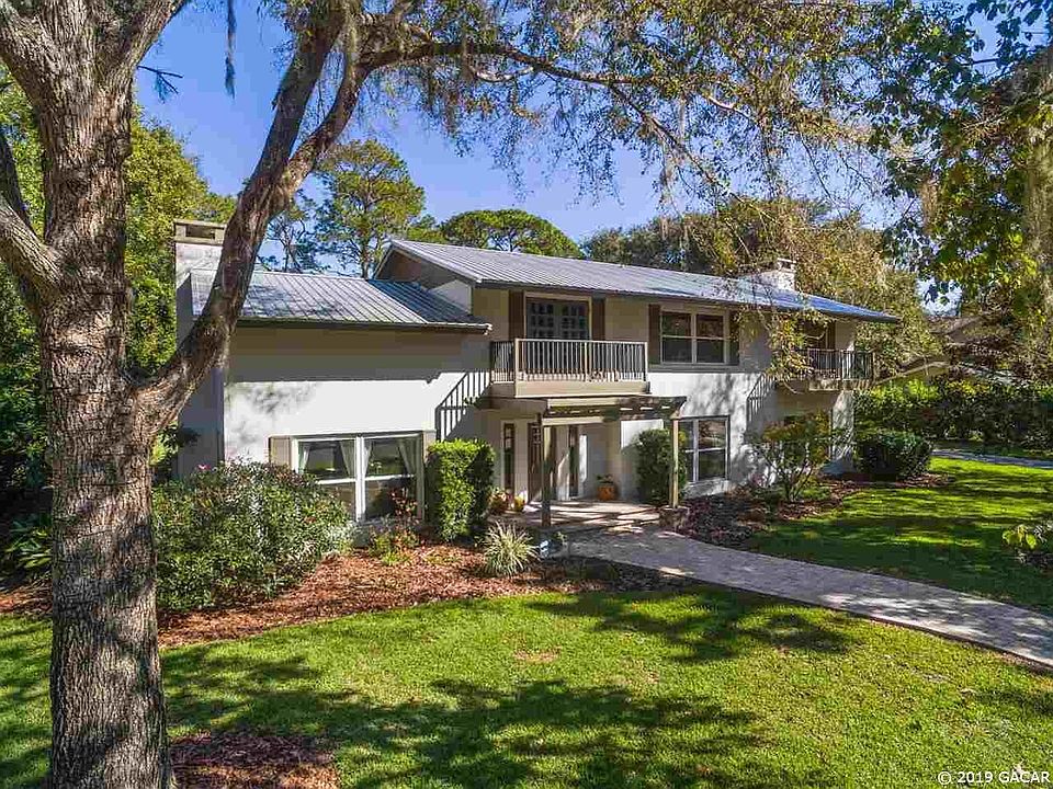 Impeccably maintained and updated home conveniently located in the desirable Gainesville Country Club, close to I-75, only minutes to UF, and overlooking the golf course! Enter this lovely home, and immediately notice the light and bright spaces with oversized windows, and enjoy the incredible views of the expansive rear lanai, private backyard, and golf course. Extensively updated with newer kitchen, baths, new insulated windows, all new flooring throughout, and new metal roof, this home is truly move in ready! The first level boasts a grand foyer, an elegant living room with fireplace, separate dining room, large family room/office also with fireplace (which could be used as a fifth bedroom), a full guest bath with shower, and a gourmet kitchen with new cabinets, granite counters, Thermidor ss appliances, and a separate wet bar. The cozy breakfast room and sun porch provide amazing views of the private back yard and golf course. Upstairs are four spacious bedrooms and two baths, including a master suite with spa style luxury bathroom and walk in closet. A large storage area is accessible from the rear bedroom. With a separate club membership, you will enjoy access to the golf course, the recently renovated pool and clubhouse.