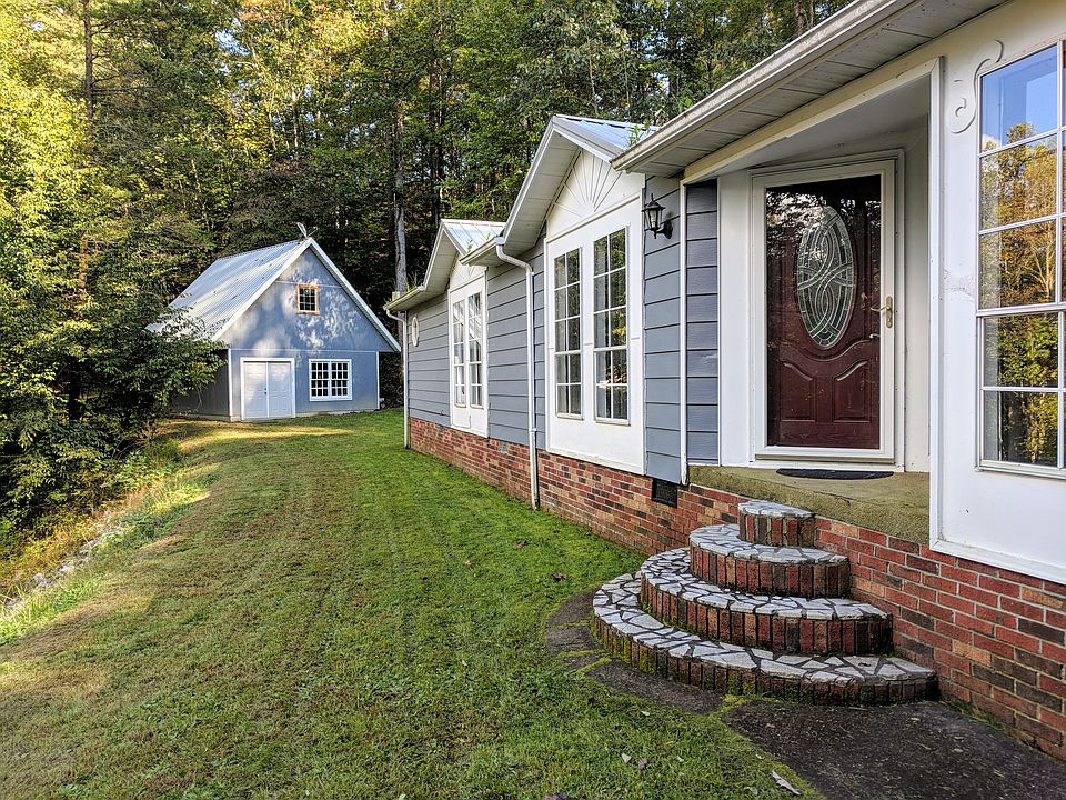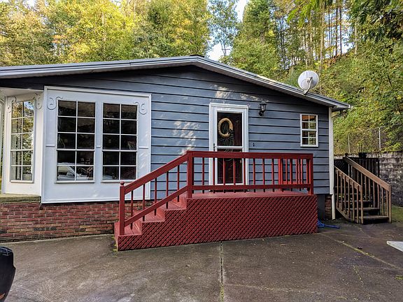 On-frame modular with recent updates, including remolded bathrooms, hardwood in dining and bathrooms, lifetime metal roof, new front and side entry doors with storm doors, French doors to back deck. Large two story out building with power on both levels and insulated from floor to ceiling. Concrete 3 car driveway, large back deck, front porch and side porch. Open floor plan for kitchen, family & rec/dining room. Large master bedroom with dressing/vanity area beside separate bathroom with garden tub. Each bedroom has a large closet, the master has two large closets. Convenient location to Haysi and Ridgeview