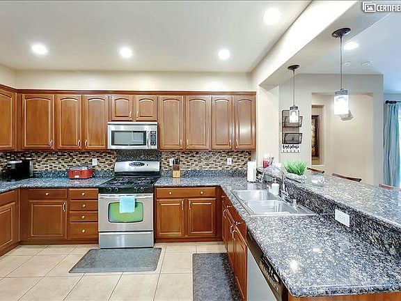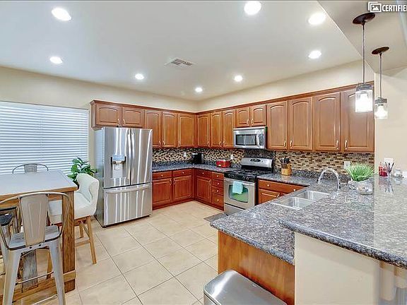 Reference CHBO ID: 24265. Check our website for furnished rentals throughout the United States. Beautiful North Las Vegas Corporate Housing Available Las Vegas might be known for its glitz and glamour, but that doesn't mean that there aren't understated places to stay only minutes from the strip. This North Las Vegas home in the beautifully designed Aliante Master-Planned Community is available for stays of three months or longer, welcomes pets, and is located in a peaceful neighborhood that is perfect for unwinding. It comes with included parking, offers central heating and air conditioning, and includes wireless Internet access. The home has three bedrooms and two bathrooms, along with a well-appointed kitchen and a spacious family room. It's designed to let in tons of natural light and has a warm and inviting feel that is perfect for families relocating into the area. It offers over 1,900 square feet of space and is CHBO complete so the utilities are included in the rental price. It comes with a washer and dryer and other extras to make it a convenient place to stay in the area. Finding access to all the necessities is simple while staying at this home. McCarren International Airport is 26 miles away, the Las Vegas Strip is 22 miles away, and several hospitals are available within a 10-mile radius of the home. Medical professionals can work nearby at Sunrise Hospital, Centennial Hills Medical Center, Mountain View Hospital, or the North Las Vegas VA hospital. Other locations in the area include Las Vegas Fitness Club, Creech Air Force Base, and Nellis Air Force Base. If you are part of a family or group who plan to stay in North Las Vegas, this home doesn't require you to sacrifice space or location. It has a neutral color scheme and boasts an open-plan living and dining area along with a functional, modern kitchen. The entire home is thoughtfully designed to create an inviting space with the best of contemporary living. It offers a low maintenance living option and is located on a quiet and safe street with friendly neighbors. The master bedroom of the home has plenty of space for a king size bed. Those who want to spend time outdoors can do that, too. There is a spa, a covered patio, and a gazebo to scope out during a visit. The backyard is surrounded by mature trees and also has a view of the greenway that offers miles of walking trails. There is a two-car garage at the home for those who come with their own vehicles. Guests can reach the Aliante Casino and Hotel Spa, Aliante Nature Discovery Park, many shops, restaurants, and supermarkets in a short walk or drive. First month rent and security deposit must be paid prior to occupancy. 5 month stay, rent will be reduced to $3100 6 months or more, rent will be reduced to $3000