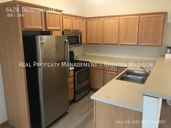This 1610 square foot apartment home has 3 bedrooms and 1.5 bathrooms. This home is located at 6428 Driscoll Dr #102, Madison, WI 53718.