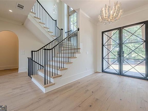 An incredible new price creates an exceptional opportunity to own this custom-built estate in a premier Canton location on 2+ acres! Dramatic custom glass entry doors open to a show-stopping three-level staircase, 7" wide-plank white oak floors, and soaring vaulted ceilings. The heart of the home features a limestone fireplace and seamless indoor-outdoor living, with 12' accordion doors that open to expansive beamed porches overlooking the private estate. The chef's kitchen includes Thermador appliances, custom cabinetry, stunning oversized quartzite waterfall island with seating, a mix of natural wood tones, and Brizo Litze fixtures. A separate scullery features an arched entryway, showcasing Bardiglio and Carrara marble checkered floors, caf -style drawer dishwasher, black fireclay farmhouse sink, and designer hardware. The custom details like the reeded Calacatta Viola marble floating 54" sink basin and designer lighting add luxurious sophistication to the adjacent bath. The main-floor owner's suite impresses with a beamed ceiling, private veranda, and a spa-worthy bath featuring heated herringbone marble floors, a zero-entry shower, and stunning vanities. Upstairs, four spacious en-suite bedrooms offer comfort and style, while the terrace level is designed for entertaining with a sleek micro-shaker bar, media space, and access to a flat, POOL READY backyard. Bevolo gas lanterns, custom corbels, and Pella Aluminum Clad Casement windows lend timeless character to the exterior. With high-performance windows, foam insulation, a Ruud HVAC system, and smart prewiring throughout, this home blends modern technology with enduring craftsmanship-just minutes from Milton and downtown Alpharetta, with the added benefit of Cherokee County taxes. Preferred Lender offering a $6K credit to be applied toward closing costs, prepaid items, or an interest rate buydown, subject to approval.