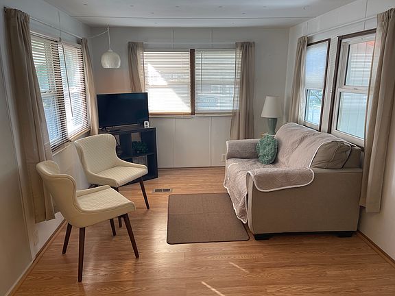 55+ Community! This meticulously clean and cared-for mobile home offers a perfect retreat for active adults. Featuring a spacious carport and a convenient laundry room with storage, this home comes fully furnished; just bring your bed! The inviting living room includes a pull-out sofa bed, and all furnishings are in pristine condition. Enjoy cooking in the modern kitchen equipped with a gas range and stainless steel appliances, complemented by a newer A/C for your comfort. The large yard is ideal for gardening enthusiasts. Tenants are responsible for utilities, including propane refill and yard maintenance, while the home operates on septic and public water. The community boasts a clubhouse, and the landlord takes care of the HOA fee. Don't miss out on this delightful living space!