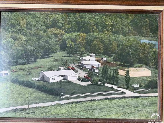 Beautiful farm w/views of rolling hills, trees, valleys, & pond. A chance to call this 40 acres M/L, with house & shop & outbuildings your peaceful country place. A very private & Secluded setting. Only 17 Miles North of Lawrence & just south of Oskaloosa. This place is ready for county living at its best. Huge Ranch style home on a full walk out basement. Room to expand the finished space and lots of land for the cattle/horses. Huge Stocked Pond, 40 x 40 Shop W/Loft & 5 storage bldgs.