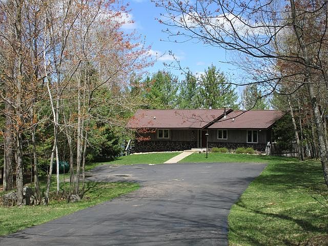 Nowhere in the Northwood's is peaceful serenity defined better than on crystal clear Snipe Lake. The 3BD/2BA home & most main rooms are exposed to lake views. A huge foyer says "Come on in " which leads you to the LR that features a stunning wood beamed cathedral ceiling & stone FP that says sit down relax & enjoy. Mature trees on 1.75 ac ensure wooded privacy. Steps made from stone, wood & a unique rope post railing leads you to 150' of sand frontage. The home is located between Eagle River & St Germain. The open concept main floor includes a cozy great room, dr, a U-shaped kit, 2 bdrm on the main floor all overlooking a wrap-around sun deck. The walkout LL has a fam rm, a 3rd BD with a nearby full BA, a bonus room for an over flow of guests. Both the LL wood stove & the main floor FP W/ a heatilator are excellent sources of supplemental heat. The det garage has plenty of space to store your toys & an extra room holds all the extras, plus the driveway is blk topped.