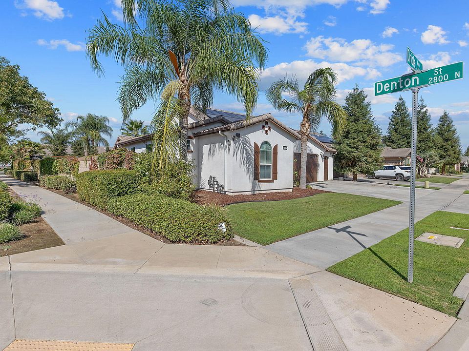 Nearly 3,000 sqft of Spanish-style elegance with Smart Home features in Northwest Visalia featuring 5 beds, 4 baths and OWNED SOLAR with little to no electric bill! Set on a generous corner lot with striking custom cement work front and back. The first floor shines with engineered flooring, a split layout & gourmet kitchen with granite counters & stainless steel appliances. Upstairs, enjoy a private bedroom & full bath plus a large loft complete with a jaw dropping MOVIE THEATER! This beautifully upgraded home is designed for modern living featuring fully equipped smart-home features throughout. Enjoy the convenience of a smart lock on both the main entry and garage door, a smart thermostat for effortless climate control, and a smart garage system that offers security and ease at your fingertips. Outside, expansive outdoor living awaits with fruit trees, garden areas, a separate private terrace & side yard. This amazing home also Includes a water heater—and a 3-car garage. A rare blend of style, space & efficiency in a highly desirable location. Schedule your showing today!