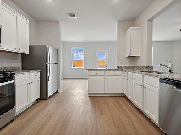Park Vista at El Tesoro offers easy access to the Medical Center, the Museum District, downtown Houston and all of the amazing opportunities the city has to offer! The Osage floor plan is a true retreat for the entire family, with four bedrooms, two and a half bathrooms, and a game room upstairs. The spacious kitchen with adjacent dining area features granite countertops, a full suite of Whirlpool brand appliances, and a walk-in pantry. The owner’s retreat includes a huge walk-in closet and large en-suite bathroom with a separate soaker tub and step-in shower. A covered front porch, extended back patio and front yard landscaping add to the curb appeal of this incredible home.