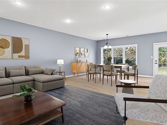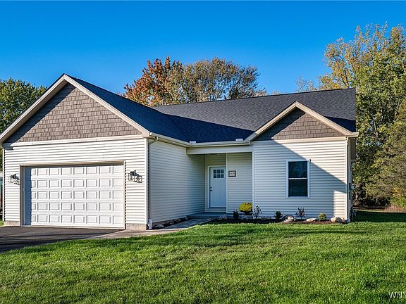 Welcome to 6429 Hamm Road, an absolutely stunning brand-new ranch that perfectly blends modern design, high-end craftsmanship, and everyday comfort. Situated in the heart of Lockport, this impressive 3-bedroom, 2-bath home offers approximately 1,600 square feet of thoughtfully designed living space where every detail has been carefully curated to deliver both style and function. From the moment you arrive, the custom front walk and clean architectural lines set the tone for what awaits inside. Step through the front door and immediately feel the volume and light created by 9-foot ceilings and recessed lighting throughout, casting a warm and inviting glow across the open-concept layout. The heart of the home is the incredible kitchen, featuring an extra-large island, granite countertops, stainless-steel appliances, and generous cabinetry — a space designed to bring people together for cooking, conversation, and connection. The living and dining areas flow effortlessly, anchored by luxury vinyl waterproof tile that combines durability with modern sophistication. Natural light fills the space, enhancing the sense of openness and comfort. The primary suite is a true retreat — spacious and serene, highlighted by a custom ceramic walk-in shower and a Pottery Barn double vanity topped with a distinctive concrete countertop, giving the bathroom a spa-like, designer finish. Two additional bedrooms provide flexibility for family, guests, or a home office, while the second full bath continues the home’s refined aesthetic with high-quality materials and stylish fixtures. A large concrete crawl space offers loads of practical storage, keeping everything organized and out of sight. Outside, the flat, expansive backyard is ready for your imagination — whether it’s hosting summer gatherings, adding a patio or deck, or installing the pool you’ve always wanted. Every inch of this home has been designed to impress, combining timeless appeal with contemporary convenience. 6429 Hamm Road isn’t just a new build — it’s a statement of quality, comfort, and modern living, ready to welcome you home.