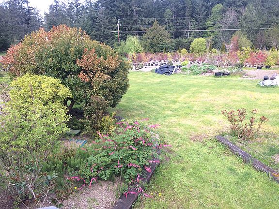 Mini farm and maple nursery with greenhouse. Over 8 acres with updated 2 bedroom 2 bath manufactured home with bamboo floors, great room, covered patio. Numerous outbuildings, studio, fruit trees, 2 ponds, 2 driveways, and truck landing. Established private nursery, with hundreds of specimen trees in pots, irrigation, large watering system. Nursery stock included. Many business possibilities, perfect retreat or event site.