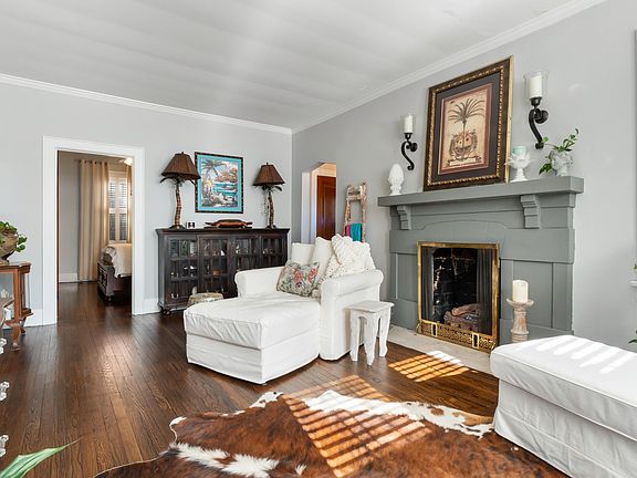 The charming front elevation of the home is beset with original brick in a Bavarian style. The landscaping and quaint front porch hearken to a different era. Inside the front entry, a large den welcomes you into the home. The original fireplace, now with a ventless gas insert, serves as the focal point to the room while the surrounding windows with thick custom mouldings and plantation shutters, which also feature throughout the home, bathes the space in natural light. The original hardwood floors, which continue through the dining area and two downstairs bedrooms, grounds the first floor. The large 10 inch baseboards also remind us of a bygone era, where craftsmanship and meticulous details were the standard and not the exception. The dining area is the perfect space for dinner parties and family breakfasts which sits just off of the kitchen and also holds the staircase that leads to the second floor. Both first bedrooms are on the right side of the home. High ceilings, natural lights, gorgeous floors, and ample space in each are all highlights of these spaces. The bathroom in between features black and white penny tile and beadboard wainscoating, reminiscent of the early 1900s, along with a walk-in shower and new vanity and lighting. Using the stairwell in the dining room, upstairs you'll find a loft area that's perfect for a library, study, office, kids play area, or multi purpose space, and two more large bedrooms. One bedroom also features a cedar closet, and the floors upstairs are also original pine floors, because pine was usually used upstairs, while a stronger wood was used on the main floor. The bathroom off the flex space has also been lovingly updated with new vanity and countertop, a new toilet and gorgeous chrome bath hardware that exudes turn of the twentieth century elegance.