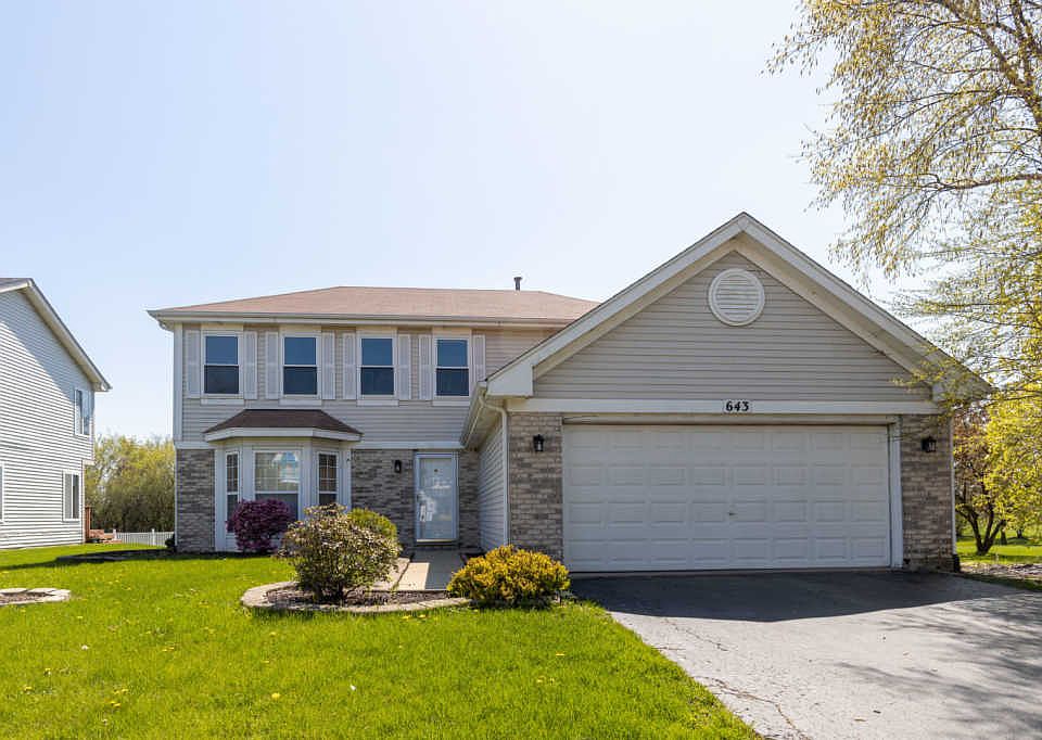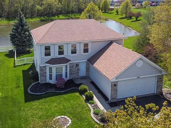 Great Streamwood location! Single family with pond views 4 bed 2 1/2 bath 2100 sq ft. Open floor plan features laminate floors in dining and family room. Large master suite features full bath with double sink and skylights plus a walk in closet. Hall Bath has Skylight as well. Relax on the paver patio with a view of the pond. Fenced back yard and close to walking trails. Great neighborhood close to shopping and transportation.