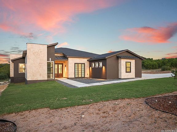 Welcome to your dream home! This stunning, move-in-ready residence blends modern elegance with comfort. Step into spacious, open-concept living perfect for entertaining, with a private retreat vibe-each bedroom features its own full bathroom, plus a dedicated half-bath for guests. Enjoy sleek ceiling-height kitchen cabinets, quartz countertops, large-format porcelain floors, and high-end appliances. Relax in the expansive family room or on the massive, shaded patio deck. The oversized garage fits your truck with ease, and the 1.4-acre lot offers privacy and lush green views. Nestled in a premier custom home community on Canyon Lake's north side, you'll have private access to the waterfront and Guadalupe River, plus exclusive amenities: a residents-only park with tennis, basketball, and pickleball courts, lakefront picnic areas, a resort-style pool, and a 215-acre nature preserve for hiking. Built with love and unmatched quality by Guizar Building, this home features a reinforced concrete foundation, on-site custom framing, and premium materials like wood window seals and spray foam insulation for efficiency. Certified claim-free by Strucsure Home Warranty for six years, this is a masterpiece built to last. Make this breathtaking home yours today!