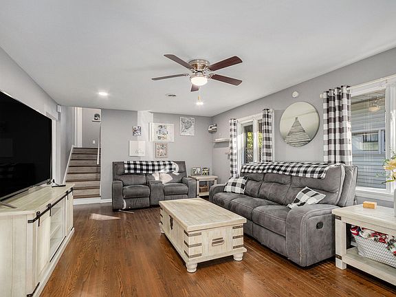 Welcome home to this beautifully maintained 4-bedroom, 1.5-bath tri-level perfectly situated in the heart of downtown Griffith! From the moment you step inside, you're greeted by a warm and welcoming main floor highlighted by real hardwood floors, abundant natural light, and an easy, comfortable flow between living spaces. The bright and airy living room leads into the fully updated kitchen, featuring white cabinetry, stainless steel appliances, subway tile backsplash, and modern fixtures--a clean, timeless look buyers love. Upstairs, you'll find three generously sized bedrooms and a beautifully remodeled full bath (2023) featuring dual sinks and a floor-to-ceiling tiled shower that adds a spa-like touch. The lower level is a cozy retreat with a wood-burning fireplace, perfect for relaxing evenings or creating a second family room, playroom, or home office. A stylishly updated half bath (2024) and additional storage areas complete this level. This home has been lovingly cared for with major updates already done for you, including new roof (2018), new sump pump (2025), new back windows (2024), and new front and storm doors (2025). Step outside to a freshly landscaped, fenced-in backyard, ideal for entertaining, pets, or quiet outdoor evenings. The detached, heated 2.5-car garage offers incredible versatility--perfect for vehicles, storage, hobbies, or a workshop year-round. Just steps from local shops, restaurants, and Central Park, this home delivers the perfect blend of comfort, style, and small-town convenience--all in a location you'll love coming home to.