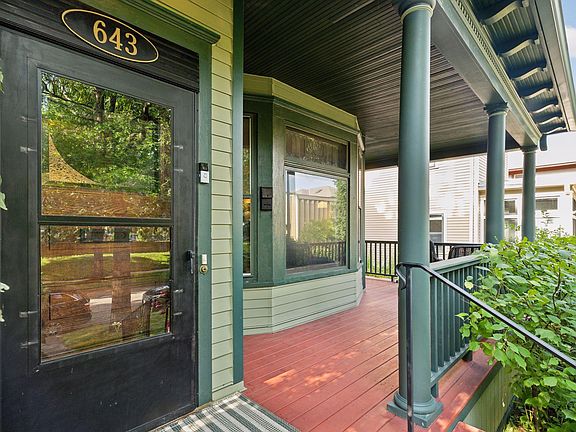 5 spacious bedrooms second floor with newer ramp access addition to main level ensuite. Updated kitchen, Marvin windows, 3 car garage & parking pad, Hardie Board siding, skylights, leaded, stained glass windows, & ornate woodwork. Wrap around porches overlook fully fenced lush backyard on double lot w/mature trees and berry bushes.