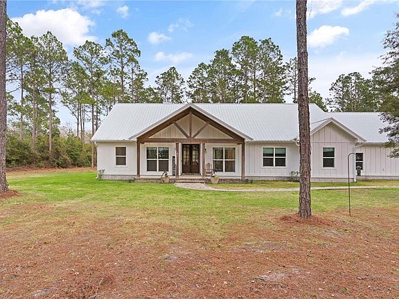 Nestled in the serene countryside of Hortense, GA, this charming farmhouse-style home offers the perfect blend of privacy and modern convenience. Situated on 3.78 acres, this 4BR/2.5BA residence features a thoughtfully designed split floorplan. The heart of the home is the inviting kitchen, complete with stainless steel appliances, including a new refrigerator, a spacious center island with a breakfast bar, and a large walk-in pantry. The open-concept design flows seamlessly into the living room, where a vaulted ceiling, built-in shelving, and a cozy wood-burning fireplace create a warm and welcoming atmosphere. The primary suite is a private retreat, boasting a luxurious ensuite bathroom with custom tile work, double vanities, and stylish new shiplap siding. Additional upgrades totaling $30,000 enhance this already impressive home, including black aluminum fencing enclosing the expansive backyard, updated lighting and plumbing fixtures in the guest bath, a new air handler, and a new water-treatment system. Other upgrades include honeycomb window treatments and fencing at the entrance to the property for added privacy and curb appeal. High-end details can be found throughout, such as spray foam insulation, soft-close cabinetry, quartz and marble countertops, and hardwood flooring. The home also has a security system and is wired for cable, speakers and a generator.
