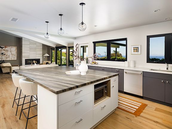 Perched atop a flat knoll in the highly sought-after Mesa neighborhood of Santa Barbara, this fully renovated single-level luxury home boasts spectacular 270-degree views of the Pacific Ocean, Channel Islands, coastline, and Santa Ynez Mountains. This turnkey coastal retreat has been completely reimagined with a brand-new designer kitchen, custom bathrooms, wide-plank flooring, doors, modern lighting, heating, air conditioning, energy-efficient Andersen windows, and much more. Enjoy resort-style living with a sparkling, fully remodeled pool with new surfacing, new equipment, and a sleek electric cover. The expansive outdoor areas are enhanced with lush landscaping, fresh lawn, and spacious patios—perfect for seamless indoor-outdoor entertaining. Sustainable and future-ready this home features a cutting-edge Tesla solar roof paired with a Powerwall battery backup system, dramatically reducing energy costs. With breathtaking panoramic views from nearly every room, this is southern California living at its finest. Located just minutes from beautiful beaches, local parks, and the Mesa's popular grocery stores and dining spots, this luxury Santa Barbara property is the perfect blend of comfort, style, and location.
