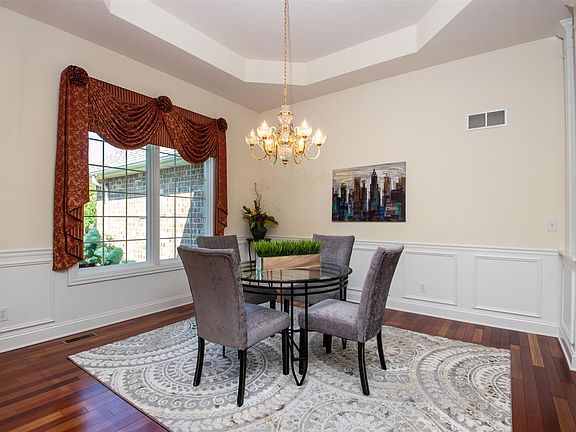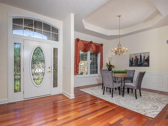 Impressive ranch in Regents Park! Once you enter this beautiful home you will see the quality & detail that went into it. Grand ceiling height of 10' & an open flrpln great for entertaining; large LivRm w/frplc wrapped w/marble & a wood mantle, DinRm w/tray ceiling, office w/frplc, Brazilian hrdwd flrs & half bath for your guests. Master suite features his & her walk-in closets, bath w/double sinks, large shower & jacuzzi tub. On the other end of the house is 2 bdrms w/Jack & Jill bath, mud rm/laundry rm. The kitchen is sure to please the cook w/granite counters, center island w/smooth top stove, double ovens, pantry, tons of cabinets, wet bar & SS appls. The sun-drenched eating area overlooks the bkyd & brick patio. The LL has partial exposure in the large FamRm w/wet bar, RecRm for pool table, bath & bonus rm. The remaining LL room to expand w/egress. 200 amp service, intercom system & central vac. This home has a lot to offer!