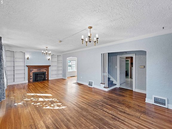 Spacious Victorian-style home in one of Coos Bay’s most sought-after neighborhoods! This beautifully maintained 5-bedroom, 2-bath charmer offers timeless character and incredible space throughout. Step into the welcoming foyer, where classic details set the tone for this charming beauty. The main floor opens to a massive living room featuring original hardwood floors, crown molding, high ceilings, charming built-ins and a new pellet stove to keep things cozy on cool coastal nights. The kitchen offers excellent functionality with a large pantry, newer appliances and abundant cabinetry and prep space, while the adjacent formal dining room is perfect for gatherings. Also on the main level is a full bathroom with a tub/shower combo and a spacious bedroom with ample storage and French doors leading to the fenced backyard and covered patio. Upstairs, you’ll find four more generously sized bedrooms and a fully remodeled bathroom with exceptional storage. The primary suite boasts hardwood flooring, a large walk-in closet with built-in shelving and a cozy electric fireplace that makes the space feel like a true retreat, while the additional bedrooms offer plush carpeting, oversized closets, built-ins and beautiful natural light throughout. Downstairs, the full daylight basement features refreshed flooring, a private entrance through the oversized garage and even more room for storage or future finished space. Outside, you will find enough parking for an RV, boat and all your toys. Important updates include a new HVAC system, pellet stove, updated electrical and plumbing, new interior paint in the main living areas and grading/waterproofing around the home’s perimeter. With thoughtful updates made throughout, the classic charm of this Victorian home has remained beautifully intact. Tucked into a quiet and well-loved neighborhood near Mingus Park, the farmers market and downtown shops. This spacious, solid and character-filled home is ready for its next chapter.