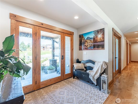Custom rambler thoughtfully designed and sitting on over 1/2 acre with a detached 1600 square foot finished shop and outdoor living area featuring a covered patio for year-round enjoyment. Enter through the beautiful custom wood and glass entry door to an open great room offering a panoramic view of the surrounding mountains. The kitchen is a cook's dream with a double oven, a walk-in pantry, a beverage refrigerator, and a coffee bar. Continue through to the covered patio, which is steps away from the pool and hot tub. The primary suite is your personal spa, complete with a sauna, cold plunge, walk-in shower, and soaking tub. The shop and garage are finished with mini-split systems for year-round comfort.