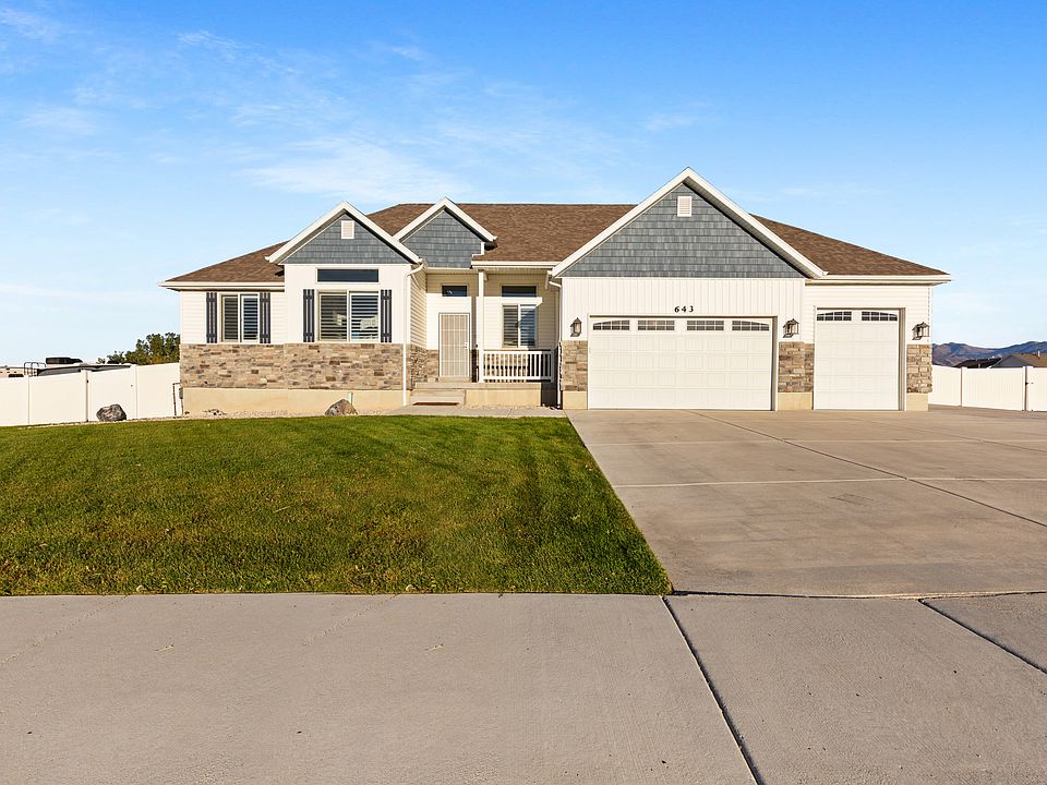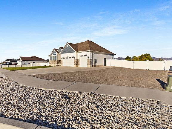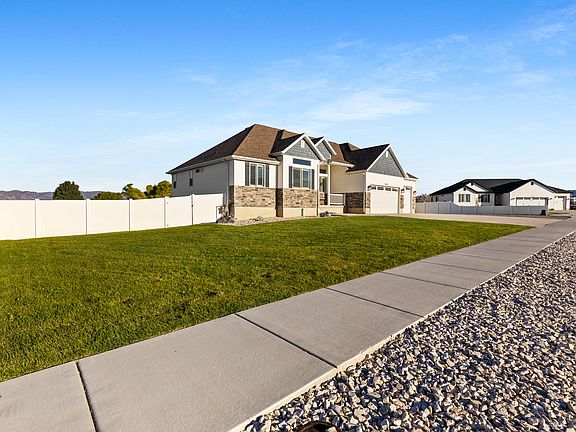 **OPEN HOUSE: Oct 4th 11:00am-1:00pm** Tranquil, Nearly Brand New Half Acre Grantsville Home With Stunning Upgrades! Separate Basement Entrance and 3 Car Garage. Sprawling Yard in Front & Back with Additional RV Side Parking, Fully Fenced, Natural Gas Fire Pit in Backyard. Room For Garden and Loads of other Fun Backyard Features. Walk into a Grand Foyer with Dedicated Office/Living room. Upgraded Solid Flooring and Impressive Vaulted Ceilings. Custom Wainscotting on Family Room wall with a cozy Gas Corner Fireplace. Easy open concept with Lovely Kitchen with Staggered Wood Cabinets, Stainless Steel Appliances, Granite Counter, Wall Pantry and Center Island. Plantation Shutters throughout. NEW Carpet throughout. Main Level living with Primary Bedroom and Laundry on main level. Primary Bedroom has attached En suite bathroom with Dual Sink Vanity, Separate Step in Shower and Soaking tub. Room to Grow in the over 1800 Sq Foot Basement. Large Cold Storage Room. One Full Bathroom has been finished in Basement. Dedicated Exterior Entrance.