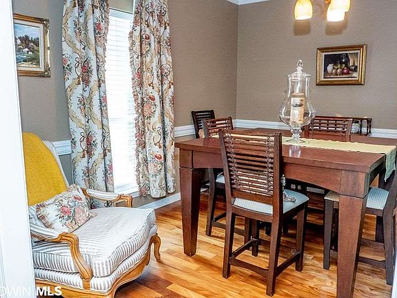 Super cute home! Family room has a wood burning fireplace and vaulted ceilings. Backdoor leads out to a deck overlooking the wooded backyard. Kitchen has an island and tile floors. Plenty of granite countertops space and lots of cabinets with an eat in breakfast area. Master bedroom has a private door to the back deck, trey ceiling and 2 closets. Master bath has a granite double vanity with a jetted tub and a roomy walk in separate shower. Wood floors throughout the home, no carpet! Spanish Fort Estates established neighborhood. Best location available to hop on I-10 to get to Mobile or Pensacola. 3/2 single story. 2 car garage.