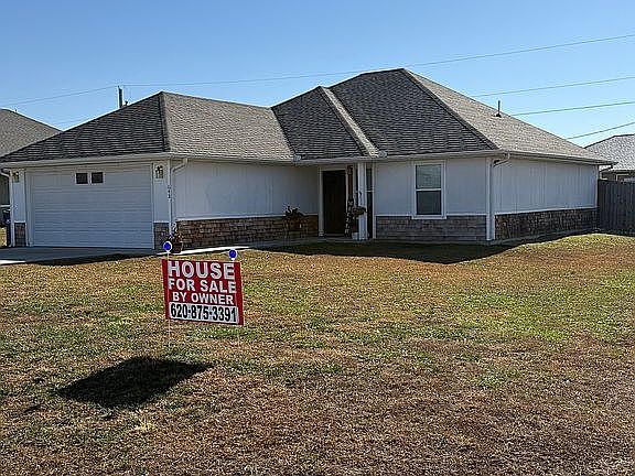 Welcome to your move-in ready ranch-style home nestled on the edge of town in the friendly community of Baxter Springs. Built in 2019, this near-new home offers modern features, low maintenance living, and a desirable layout.