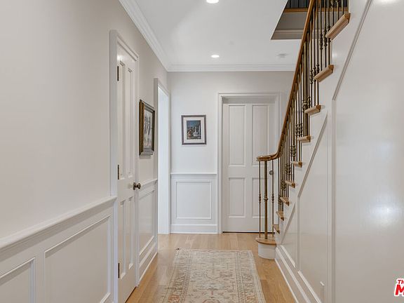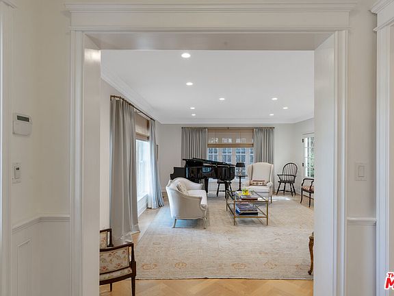 Welcome to 643 Westholme Avenue, a charming Colonial in the Little Holmby area of Los Angeles, designed by acclaimed architect Frederic Wallace and meticulously reimagined by the current owner. This home spans an impressive 4,800 square feet, with an 800 sq ft art studio/office, crafted by noted architect Frederick Fisher, all situated on an elevated 8,555 square foot lot offering classic California indoor/outdoor living! Step inside to discover a seamless blend of tradition and modern elegance. Warm toned hardwood floors flow throughout the home, featuring a light filled living room, a classic fireplace, and perfect ambiance for gatherings. A sunny dining room flows to the cooks kitchen offering built-ins, premium appliances including Sub-Zero, Miele, and a Wolf range and cozy breakfast area with upholstered banquette perfect for family meals. A cozy family room, complete with a fireplace, custom built-ins opens and wall of glass opening to the flagstone patio and meticulously designed terraced garden, designed by noted landscape architect Laurie Loyce. Enjoy outdoor entertaining at its finest, offering a fire pit, fountain, kitchen, pergola and many citrus and fruit trees. A magical outdoor dining area beautifully accented with outdoor lighting for many al fresco evenings. This home offers 5-bedrooms, 5.5-bath, all en suite, providing privacy and convenience. The serene primary suite boasts vaulted ceilings, built-ins, a luxurious bathroom with a separate shower and tub, and Toto toilet. A private balcony overlooks the lush gardens. Perfectly sited amongst this idyllic garden setting is a separate 800 sq ft studio designed by Frederic Fisher with soaring vaulted ceilings, skylights, and a mini kitchen and bathroom offering a variety of uses - art studio, home office, guest house, screening space, etc...Additional features include a laundry room, water filtration system, 2-zone HVAC, a 2-car garage, but no direct access to the house.- perfect for a family, or anyone wanting true haven offering privacy, elegance, and sophistication. Adjacent to UCLA and Beverly Hills and central to all LA has to offer!