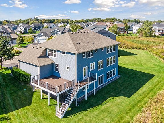 Welcome to this exceptional two-story home located in the highly sought-after Ravinia neighborhood of Corcoran. Meticulously maintained and thoughtfully designed, this spacious residence offers an open and light-filled layout with high-end finishes and attention to detail throughout. Featuring five bedrooms, five bathrooms, and a three-car garage, this home seamlessly blends style and functionality. The main level is ideal for both entertaining and everyday living, showcasing a welcoming front porch, a private office, a large mudroom, sitting room, an open foyer, and an informal and formal dining area. At the heart of the home, the gourmet kitchen impresses with custom cabinetry, stainless steel appliances, a gas cooktop, wall oven and microwave, granite countertops, a walk-in pantry, a large center island, and a spacious dining area that flows into the sun-drenched living room complete with a beautiful fireplace and custom built-ins. Just off the dining area, enjoy outdoor living on the maintenance-free 26x18 deck that overlooks the backyard. Upstairs, you’ll find four generously sized bedrooms and three bathrooms, including a luxurious primary suite with a large walk-in closet and spa-like bath featuring a soaking tub, separate walk in shower, and dual vanities. A full laundry room on the upper level adds convenience. The expansive walkout lower level offers a large family room with a second fireplace, a fifth bedroom, Wet bar, bathroom, and a large utility room. Step outside to the private backyard overlooking a serene pond perfect for relaxing or entertaining. Residents of Ravinia enjoy access to wonderful community amenities, including a neighborhood pool, clubhouse, and playground. Situated in the award-winning Wayzata School District and conveniently close to parks, lakes, trails, shopping, and dining, this home offers an unmatched lifestyle in a truly desirable location. Welcome home.