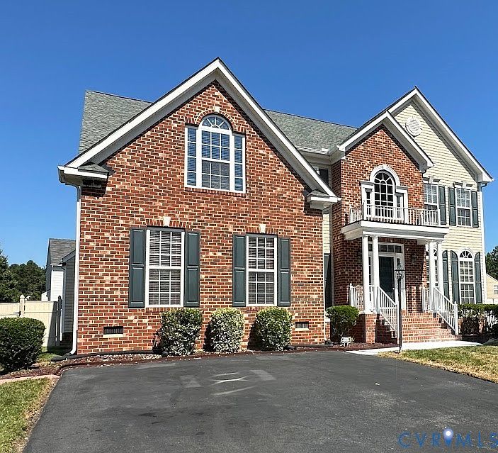 Welcome to this beautiful well maintained 3-Story home that has lots of upgraded features. Interior is 4,101 sq. ft. 5-bedrooms with wood floors throughout the first floor. The foyer has a high ceiling with chandler, tinted windows, double oak staircase, half bath, and two coat closets. Living Room with 9 foot ceilings, crown molding, columns that separate the formal dining room with two piece crown molding, trey ceiling and unique lighting. The large eat-in kitchen features granite counters, recessed lighting, island, breakfast bar, plenty of cabinet space, stove, built-in microwave, refrigerator, pantry and French doors access rear deck. The bright family room is open for entertaining with coffered ceiling, ceiling fan, gas fireplace, ceiling to floor windows, and television mounted on the wall. Additional room with double closet, ceiling fan can be used as guest bedroom, recreation/play room or office. The second floor primary suite features a sitting room with ceiling fan, tinted windows, two walk-in closets, a garden tub with jacuzzi, shower, private toilet, double sink vanities, and ceramic floors. There are 3 other bedrooms with ceiling fans, double closets and a full bathroom in the hallway. Laundry room with storage shelves, washer and dryer hookups. Third floor has additional room space that was used as an exercise room, storage closet, 5th bedroom with walk-in closet and full bath. All window treatment and custom blinds convey. Exterior features brick front, brick entry with columns and vinyl siding. two year old roof, two zone hv/ac system lower unit was replaced in 2024, Landscaped yard, irrigation system front sides and rear, paved driveway, vinyl fence around rear yard, 14' X 16' deck, 10' X 14' storage shed with matching vinyl. Must see to appreciate. This property is conveniently located near Chesterfield Government Center, walking trails, historical sites, state parks, places of worship, shops, restaurants, schools, and 30 minutes from Downtown Richmond.