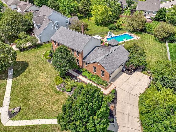 A coveted home in a highly sought-after community, this one truly has it all! Situated on one of the largest lots in the neighborhood, the fenced backyard is an entertainer's dream: 16'x32' inground pool (4' to 8' deep) w/diving board & water slide, paver patio, gazebo & freshly painted deck. Inside, you'll find four bedrooms plus a first-floor office or 5th bedroom, family room w/French doors, woodburning/gas fireplace & built-ins, plus a spacious living room & separate dining room. The centrally located kitchen features an island, solid surface counters & large pantry. New flooring in kitchen. New LVP in the stunning owner's suite w/Jacuzzi tub. The large finished lower level includes a rough-in for a bathroom. Oversized driveway & garage that includes a bump out section (perfect for a motorcycle). A fantastic layout for multi-generational living! This is the backyard for easy summer entertaining, keeping you & your guests cool in the summer.