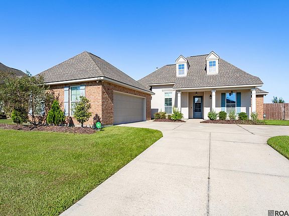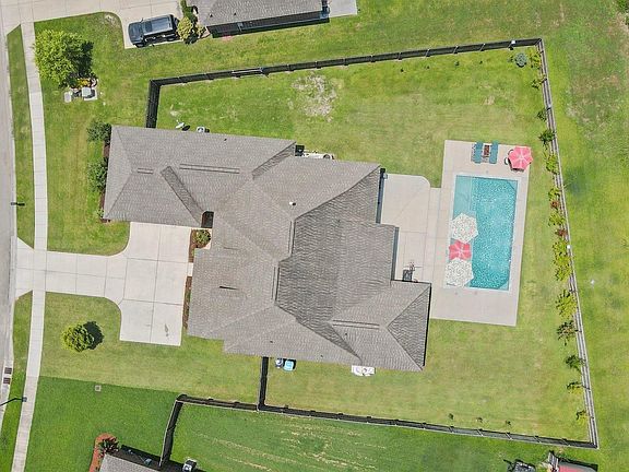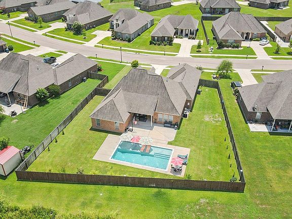 Welcome to this gorgeous 4 BR, 3 BA home with a triple split floor plan, offering both privacy and open living spaces. Situated on approximately 1/2 acre, the home is designed with elegance and style in mind. The kitchen is a true highlight, featuring a large, center, island with under-counter storage and a convenient drop-down section, perfect for casual dining or gathering while meals are prepared. Equipped with high-end stainless steel appliances, including a five-burner gas cooktop, microwave, pantry and custom built, stained, cabinets this kitchen is as functional as it is stunning. The thoughtful design and layout make it ideal for entertaining or enjoying family time in a luxurious yet welcoming space. The breakfast area and living room are beautifully designed, with a wall of windows that flood the space with natural light and offer stunning views of the pool. The living room also features a cozy gas ventless fireplace and custom built-ins, seamlessly connecting to the formal dining room, perfect for hosting elegant dinners. The spacious master bedroom is a true retreat, featuring an en- suite bath with granite countertops, double vanities, garden tub, separate shower, water closet, a spacious walk-in closet adding both luxury and functionality to the entire bathroom. This home offers the perfect blend of comfort, style, and modern convenience. The backyard is an entertainer’s dream, featuring an inground, gunite, pool measuring 18’ x 32’, complete with a heater/chiller for year-round comfort. The pool also includes a ledge for sunbathing or simply relaxing in the water. Whether you’re enjoying a swim or watching the picturesque sunsets, the expansive covered and uncovered patio offers plenty of space for outdoor living and entertaining. For added privacy and security, the entire backyard is fully enclosed by a wood fence, creating a serene and safe environment to enjoy every day with picturesque sunsets in the evenings. Brusly School District.