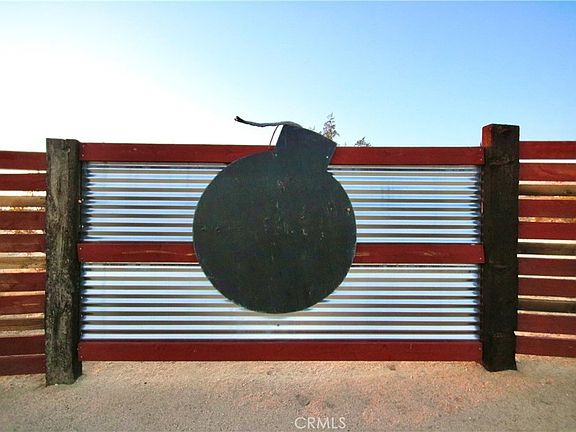The Bom is for sale! Landmark property in south Joshua Tree, 2.5 acres with an unfinished 2 bedroom home. 2 small day cabins flourished with Joshua Tree character. Located on Hwy 62 within sight of the National Park, this iconic property boasts unique and artistic elements throughout, such as being sided with shipping container steel, double 2x4 walls, split level construction, off-grid potential and ready for completion. This home is approx 1100 sq ft with open plan living area and 2 large bedrooms, The shower is step down for added distinction. 11ft ceiling also provides a spacious experience as one views toward the Joshua Tree National Park. The cabins allow for modest guest use in a charming format where the classic elements of home are re-imagined in idiosyncratic ways. A solar battery bank provides electricity throughout in these fun structures. Outdoor showers, other fun stuff including large yard for your many entertaining ideas--art shows, lectures, star parties. Natural landscaping prevails as the creosotes were left largely undisturbed and were included in the plan drawings. This property is ready for a creative and resourceful buyer who can lift this project to the next level. It is all there: unique home, large grounds and a great reputation as one of the true eye-catching icons of Hwy 62.