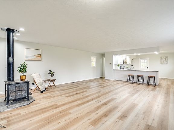 Enjoy peaceful country living in this remodeled split level set on 1.5 acres in East Muskingum Schools. Surrounded by farmland and mature trees, the home features a bright open layout with new flooring, lighting, and paint throughout. The kitchen stands out with white cabinetry, granite countertops, stainless steel appliances, and a peninsula with bar seating that overlooks the spacious living area with a wood burning stove. A full bath is conveniently located on the main level.