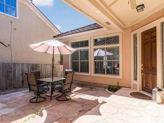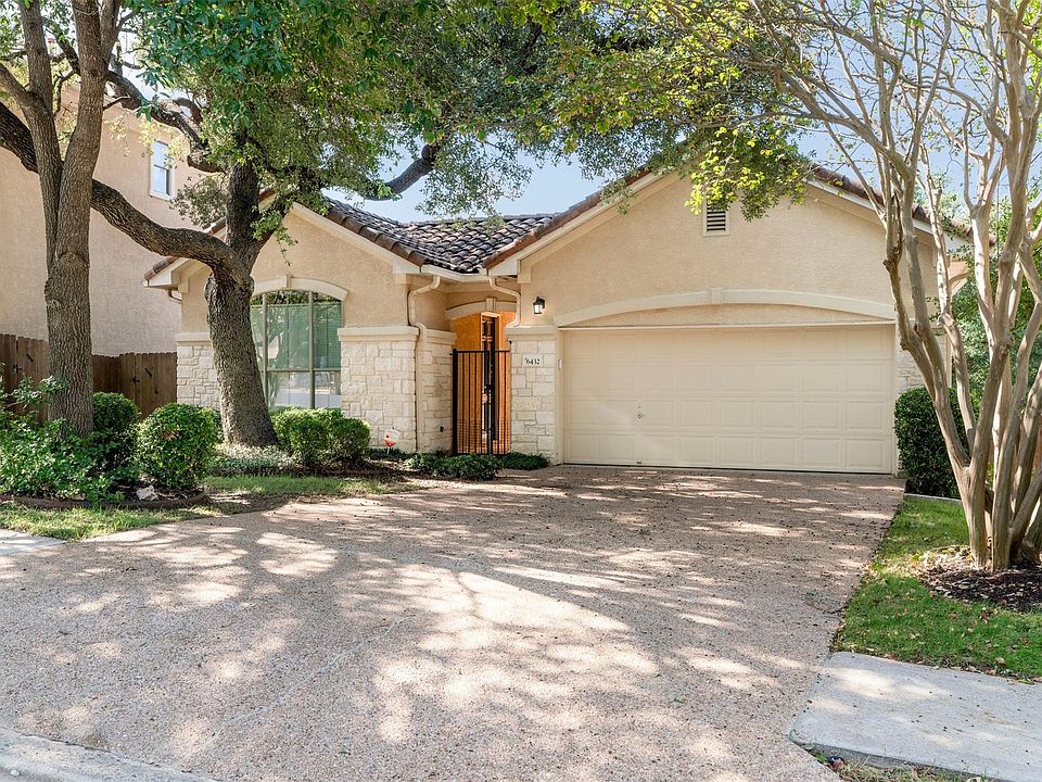 Tucked inside the gates of one of Circle C’s most private sections, this home backs to a stretch of greenbelt so thick with trees it feels like your own slice of Hill Country. The courtyard out front is fully gated; a quiet spot for morning coffee or a place to drop the day before heading inside. The front door opens into a living room made for unwinding, anchored by a fireplace and framed by arched niches. Sunlight spills through the wall of windows, filling the room and drawing your eyes straight out to the tree shaded front yard. Tile floors run through the main areas, keeping everything cool and easy to maintain, while the layout flows naturally into the dining and kitchen spaces. The dining area feels effortlessly inviting with its chandelier and doors that open to the back deck. It’s the kind of setup that makes dinners linger a little longer. In the kitchen, a wraparound breakfast bar creates a natural hangout spot. Granite countertops, a gas cooktop, built-in oven and microwave, and plenty of cabinetry mean you’ll never run out of space. The primary suite sits at the back, with windows framing greenbelt views you’ll never get tired of. The ensuite bath delivers everything you need: dual vanities, a soaking tub, separate shower, and a generous walk-in closet. Two additional bedrooms round out the layout, one with its own full bath, perfect for guests or an in-law suite. Out back, the deck stretches across the rear of the home, elevated just enough to catch the breeze and watch the trees sway. The built-in bench makes it easy to settle in for a glass of wine or a good book, and the xeriscaped yard below keeps weekends free for something better than mowing. Living here means more than a pretty home! It’s access to miles of trails, multiple parks, playgrounds, and resort-style pools. Top-rated schools, H-E-B, Alamo Drafthouse, and favorite local restaurants are all just minutes away, with MoPac ready to take you downtown. This is Circle C living at its best!