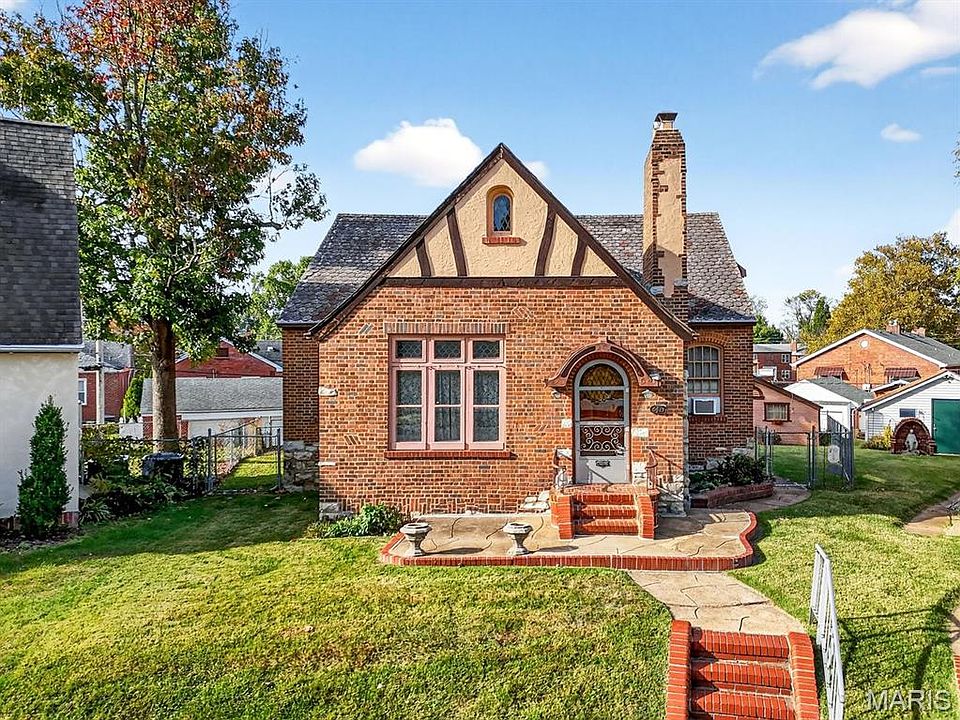 Opportunities to live on this block don’t come along very often. Lived in and lovingly cared for by the same family for 60-plus years, 6433 Woodbine Ct is nestled at the end of one of the few cul-de-sacs in one of St Louis' premier neighborhoods, Princeton Heights. The four-bedroom Tudor revival home features hardwood flooring and a soaring vaulted ceiling boasting decorative timber beams in the main living space with a cozy wood-burning fireplace and a large lead glass picture window that floods the front of the house with natural light. Flowing from the living room up a step is an ample dining space, with enough room for a big farm table. High ceilings and warm hardwood flooring are featured in the two sizable main level bedrooms. Off the central foyer leads to the well-lit eat-in kitchen with a gas stove that walks out to an enclosed porch surrounded by windows and skylights. Upstairs you'll find more living space with two large bedrooms and a half bath and plenty of storage space. The walkout basement has plenty of space for storage, games or a workshop. A nicely manicured lawn and rare detached two-car garage complete the package for this lovely home. Stroll the streets of this beautiful neighborhood and marvel at the unique brick homes all with distinguishing features. Pride of ownership is evident on block after block. Don't miss this amazing opportunity!