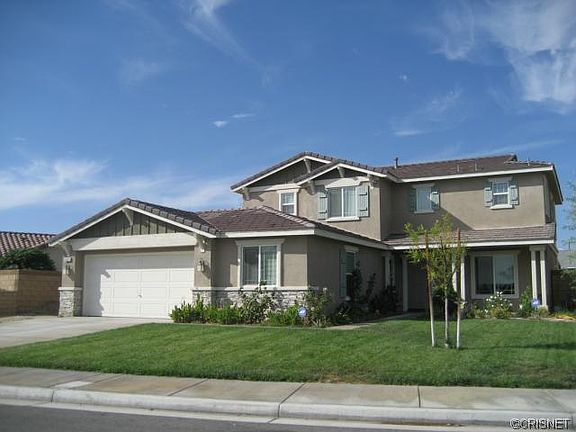 Large newer two story home in Palmdale, features 4 bedrooms 2.5 baths, a Family Room with a fireplace, Formal living Room a large open kitchen and a Den. It also features front green landscaping and landscaped backyard with nice patio and a nice large tool shed for all the Tools! Standard Sale. Ready to Move in