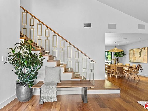 This stunning 5-bedroom, 4-bathroom Lake Hollywood residence has been completely reimagined by renowned designers Vaughan Benz, blending modern sophistication, family functionality, and timeless California style. Nestled just below the iconic Hollywood Sign on a quiet cul-de-sac, the home sits on a wide, sidewalk-lined street with ample parking - an ideal setting for families and gatherings. A private gated courtyard introduces the property with lush greenery, and tranquil seating areas before opening to a light-filled two-story layout. Inside, North American walnut hardwood floors, custom lighting, and tailored finishes create an inviting, contemporary atmosphere. The expansive family room serves as the heart of the home, flowing seamlessly into a chef's kitchen equipped with a Wolf range, a wine fridge, walk-in pantry, and a generous center island with casual eat-in dining. Perfect for everyday living and entertaining, this space connects effortlessly through walls of glass to the resort-style backyard. Step outside to a garden sanctuary designed by landscape designer Steve Silva - a private oasis with sparkling pool and spa featuring a waterfall, built-in fire pit, fruit trees, herb garden, and low-maintenance turf lawn. Whether hosting friends or relaxing under the stars, this outdoor retreat was made for connection and calm tranquility. Upstairs, the luxurious primary suite offers sweeping views, an oversized walk-in closet, and a spa-inspired bath with Apaiser soaking tub, dual vanities, glass shower, and Seura TV mirror. Four additional bedrooms and three beautifully designed baths provide generous space for family and guests. Additional highlights include a built-in stereo system, a spacious laundry room with custom cabinetry, and a direct-entry two-car garage. Located minutes from the 101, major studios, the Hollywood Bowl, and scenic Lake Hollywood trails, this newly remodeled home offers the perfect balance of luxury, lifestyle, and Los Angeles living beneath one of the city's most legendary landmarks.