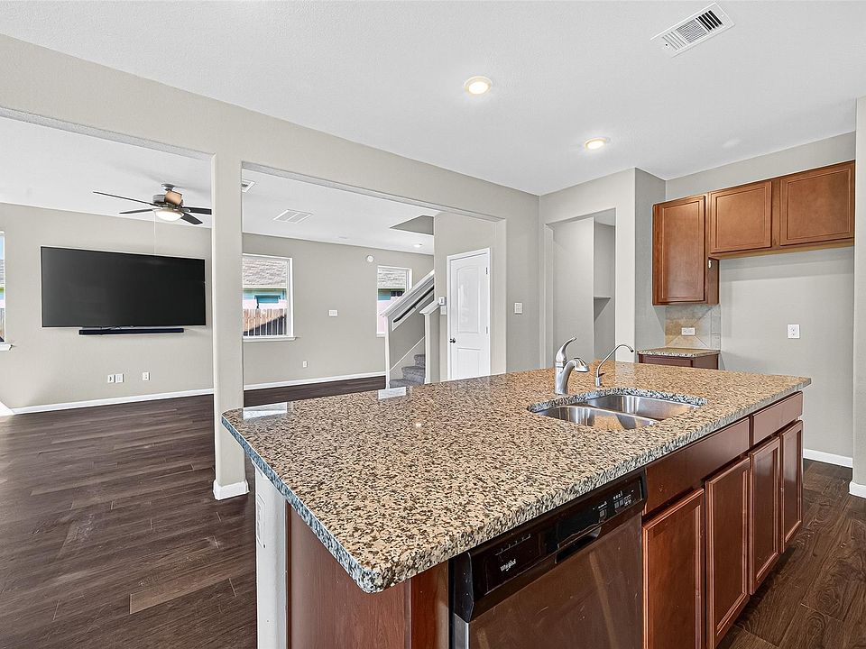 Open floor planPlush carpetingEngineered hardwood floorsCeiling fansLarge patioGranite countertopsBright windows