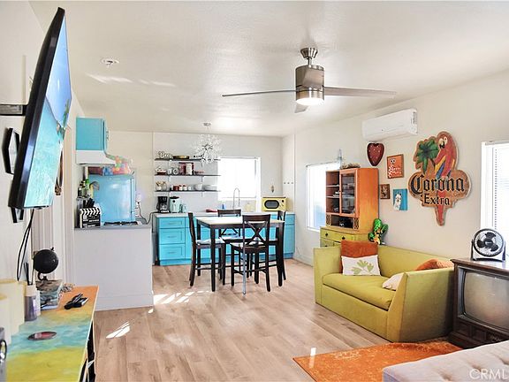 Charming 1-bedroom, 1-bath home in the heart of Joshua Tree! If you’ve been searching for your desert oasis, look no further. This turnkey property is ready to enjoy and offers a spacious bathroom with a freestanding tub and shower, a beautiful kitchen, a newer roof, and plenty of outdoor space to relax or entertain. With an additional detached structure featuring its own half restroom and bar area, this space is perfect for family gatherings, entertainment, or could be converted into an additional guest room or studio.