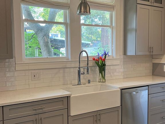 Craftsman characterMature redwood treesFarmhouse sinkNew countertopsLots of windowsFull-size closetMarble-tiled rain shower