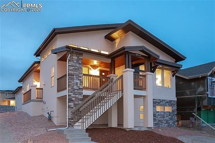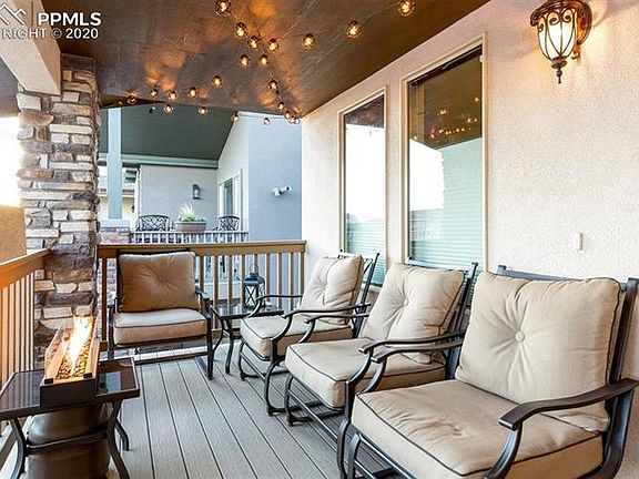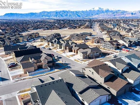 Practically new Vanguard Home! Open Ranch plan with a rear-load garage and a spectacular view of Pikes Peak. The HOA includes exterior water, lawn maintenance, snow removal, trash removal, recreation center membership and all of the Wolf Ranch amenities like parks, hiking trails, ponds, dog park, entertainment pavilion with Splash pad area! Main level living with cozy fireplace, kitchen and dining area great for entertaining! You can enjoy the beautiful Colorado sunsets from your covered front porch! The Kitchen is a Chef's dream with Granite counters, Stainless Steel appliances, Double oven, almost new GE Refrigerator, beautiful cabinetry with Soft-close drawers, under cabinet lighting, Pantry and large Granite Island perfect for entertaining. The large Master Bedroom has a Spa-like 5 piece bath and 2 walk-in closets! The front office is over-sized to accommodate many uses and could be used as a 2nd Bedroom upstairs. The finished garden-level basement has impressive 9' ceilings is pre-plumbed for a wet bar, spacious family room and two additional over-sized bedrooms with Jack and Jill bathroom. Humidifier, Carrier 2-Stage Hi-Efficiency Furnace Fully Landscaped with Vinyl Fencing, Dog Run with Dog Door from Insulated garage. The entire home is set-up for home security with Comcast. HERS Rated home which means lower utility bills! The Wolf Ranch Community is a great place to live and is close to Military Bases, Shopping, Restaurants, and award-winning District 20 Schools! SELLER HAS BEEN RELOCATED - READY TO MOVE-IN NOW!