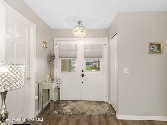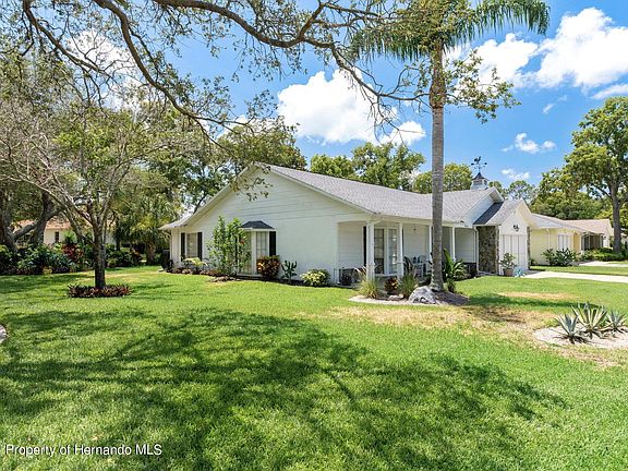 Active under contract accepting back up offers. Amazing fully updated 2/2/2 home in Timber Pines 55+ resort community. Don't let this one get away. Roof 2019, HVAC 2020, garage door 2019. Corner lot home with a wonderful front porch. The home has all that you need to enjoy the Florida lifestyle. Screened in lanai with hot tub. Double entry doors lead you to this split floor plan open concept home. Appliances are newer and washer and dryer are new. Home includes furniture and golf cart and hot tub, with acceptable offer. Home is near our new pickleball courts and our multimillion dollar fitness and wellness center. Come and enjoy resort style living with our 4 golf courses, 2 pro-shops, driving range, 2 putting greens, a full time restaurant and a performing arts center, tennis courts, 2 pools w/hot tubs and numerous clubs and activities. All for a low HOA of 314.00 a month, which includes high speed cable and internet.