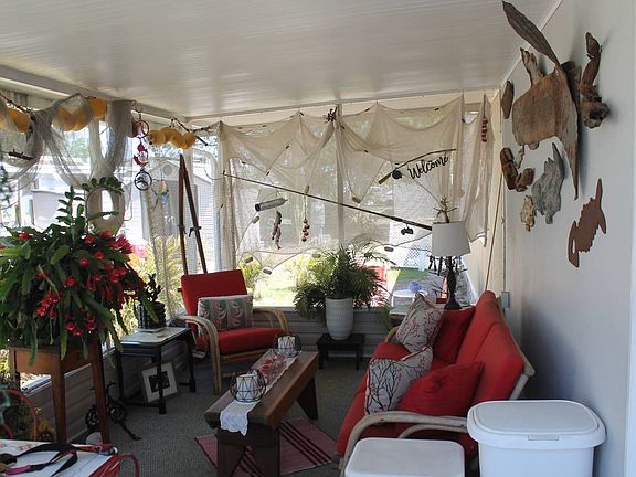 2bd/1bth in a 55+ active community.This is a beautiful home with water view, screened in porch, carport, shed, walk in shower, and beautifully decorated. The community has a heated pool, low lot rent, clubhouse, shuffle board, horse shoes, and friendly residents.