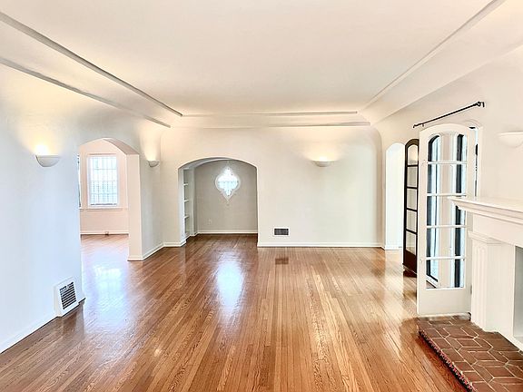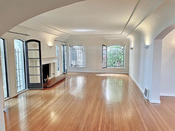 In a beautiful duplex, on a tree lined street, in Beverly Grove, this lower apartment is full of charm. With large rooms, tall ceilings and gleaming oak floors throughout, it is enormous and lovely. Built is 1929 it is filled with wonderful historic details. The expansive living room, surrounded by tall French windows, has a wood burning fireplace and a side nook on the west. A sizable formal dining room leads to a breakfast room with a large built in side cabinet for dishes or art objects. The generous master bedroom has tall windows and doors opening to enclosed plant patios. The second bedroom makes a great den and the back bedroom is en suite and a perfect guest room. The master bath has beautiful deco tiles and a soaking tub separate from the shower. The kitchen has granite countertops and back splash. It comes with one covered parking space in the back, washer and dryer and central A/C. This is in a wonderful walking neighborhood in a prime location. Owner pays for water, trash and gardener. Tenant responsible for gas and electric.
