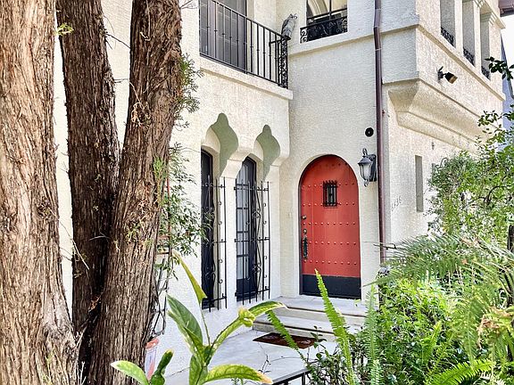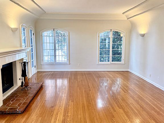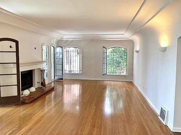 In a beautiful duplex, on a tree lined street, in Beverly Grove, this lower apartment is full of charm. With big rooms, tall ceilings and gleaming oak floors throughout it is enormous and lovely. Built is 1929 it is full of wonderful historic details. The expansive living room, surrounded by tall French windows, has a wood burning fireplace and a side reading nook on the west. A large formal dining room leads to a breakfast room with a large built in side cabinet for dishes or art objects. The generous master bedroom has tall windows and doors opening to enclosed plant patios. The second bedroom makes a great den and the back bedroom is en suite and a perfect guest room. The master bath has beautiful deco tiles and a soaking tub separate from the shower. The kitchen has granite countertops and back splashing lots of cabinets. It comes with one covered parking space in the back, washer and dryer and central A/C. This is in a wonderful walking neighborhood in a prime location. Unfortunately, this is a no dogs building but, a cat is welcome. Owner pays for trash, gardener and water. Tenant responsible for gas and electric.