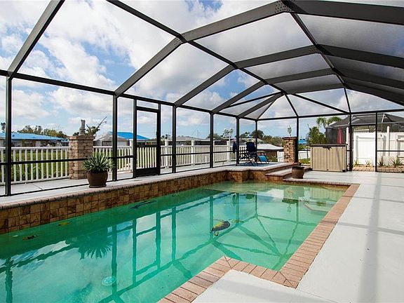 GULF ACCESS POOL HOME! Furniture can be included with sale. Well maintained, beautifully updated 3 bedroom, 2 bath, 1 car garage pool home with spa on SALT WATER CANAL! Gourmet eat-in kitchen with center island, wood cabinetry, corian countertops, tile backsplash, breakfast bar and upper glass face cabinetry, so grab your chef's hat. Nice size living and dining room combo has French doors leading to the den. Den (optional 4th bedroom) has a ceiling fan, wall closet and French doors leading to the lanai. Master suite has French doors to let in the natural sunlight and leads to the sparkling pool, the ensuite has a large wood vanity with dual sinks, tile shower and open linen closet. CROWN MOLDING THROUGHOUT! Both guest bedrooms have wall closets and guest bedroom 3 has French doors to the lanai. Guest bath has a combination tub/shower and wood vanity with corian countertop. Relax on the HUGE screen lanai/pool area while enjoying your favorite beverage or jump in the sparkling pool for a swim then the spa to finish off your day. Concrete walkway with decorative railing leads you down to the wood dock with electric. BRING YOUR BOAT! Fish from your dock or jump on your boat and do some world class fishing at Boca Grande. This salt water canal leads to the MYAKKA RIVER then out to the GULF OF MEXICO. North Port is located between Port Charlotte and Venice which offers class A schools, shopping, fine dining, North Port Aquatic Center, family and pet friendly park and much more. This Southwest Florida location is ideal for year-round enjoyment of boating, fishing, golfing, Several Gulf beaches, beautiful natural resources, many restaurants, parks, public tennis courts and shopping. Cultural events are held throughout the year, multiple baseball parks are also located close by. Home is located just 12 minutes from Tampa Bay Rays Training Stadium, less then 5 miles from shopping mall & many Parks, 25 minutes from multiple Gulf Beaches, Punta Gorda regional Airport is located 21.5 miles away which is serviced by Allegiant air. Fisherman's Village and Historic District are about 28 miles away with multiple restaurants and shopping. Only 21 minutes to Historical Dearborn St. with shops, fine dining and live entertainment. CALL TODAY FOR YOU OWN PRIVATE SHOWING! This one won't last.