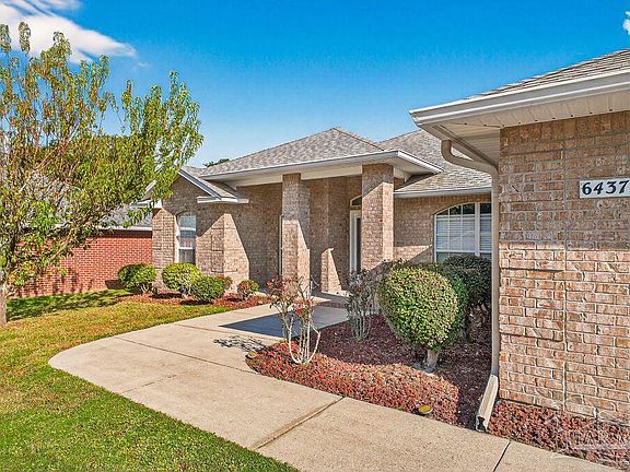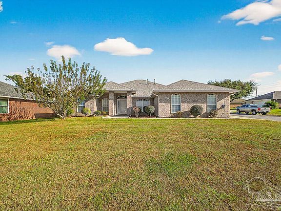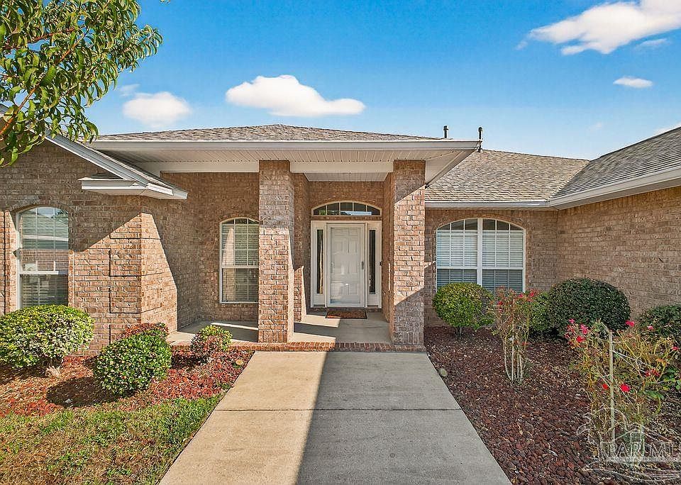 This breathtaking 2,589 sq. ft. all-brick home is perfectly situated on a premium corner lot in a well-established and peaceful neighborhood. Featuring 4 spacious bedrooms and 2.5 bathrooms; this home offers a thoughtfully designed layout that provides ample space for comfortable living and elegant entertaining. Step onto the inviting covered front porch and into a warm foyer, where you'll find a private study with French doors and a formal dining room—ideal for working from home or hosting family dinners. The living room/family room features a cozy fireplace, creating a warm and inviting atmosphere perfect for gatherings during any season. Dream Kitchen Highlights: Abundant cabinet and countertop space Central island for food prep and casual meals Breakfast nook for relaxed morning dining Stainless steel gas range, mounted microwave, and dishwasher Convenient pantry Opens into both the formal dining area and a spacious family room, ideal for entertaining and everyday living A convenient half bath is located just off the foyer. Interior Features: Beautiful carpet flooring in the main living areas for comfort and easy care Spacious owner’s suite with box ceiling and ceiling fan Owner's bath includes: Large walk-in closets Garden tub Separate shower Double vanity with stylish countertops Linen closet for additional storage The three additional bedrooms are generously sized and share a well-appointed full bathroom. Exterior & Additional Features: Fully sodded yard with a sprinkler system, Three-car garage with two garage doors, Roof replaced in 2025, offering peace of mind for years to come. Prime Location: This home is conveniently located near: NAS Pensacola, Perdido Beach, Pensacola Beach, And many other local amenities, shopping, and dining options Don't miss the opportunity to own this exceptional home that combines space, comfort, and location!