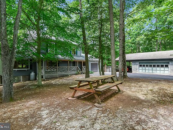 List Price is Lower than Appraisal!!! Use this as your choice of a Single Family, Related Living, Mother-in-Law Suite, College Student Still in-Residence home. Or a RARE King George rental property! Basement apartment income can help pay the mortgage, insurance, taxes and utilities. Situated on a 2-acre wooded parcel with no HOA, home is conveniently located between Fredericksburg and Dahlgren. The dining room leads to the covered deck overlooking the backyard. This deck has a dedicated gas hookup for your BBQ grill from the homeowner's propane tank that conveys. An additional, sizable living area with a bay window and thermostat-controlled gas fireplace can be used as a den, office, or family room, depending on your needs. The large eat-in kitchen has a pantry and laundry closet. Kitchen opens to a screened porch large enough for casual, al fresco dining with steps leading down to the backyard. Also, from the kitchen you can access the 1-car attached garage with wall-to-wall shelving and work benches. Up the unique, spiral staircase you will find 3 bedrooms and 2 full bathrooms. Imagine enjoying the wooded view from the upper deck off the generous sized primary bedroom. The basement is a true bonus! The fully finished lower level has its own outside screened patio entrance suitable for additional family members or apartment rental. It has a separate mailbox, separate water heater, electric meter and GenerLink. Inside the 900 sq.ft., completely repainted space is a living room and bedroom, full bathroom, full kitchen equipped with a washer and dryer. New carpet and vinyl flooring. Outside there is more storage with a 2-car cedar-sided detached garage that boasts a row of cabinets. Both garages have automatic door openers and insulation. There is a small, basic metal shed and a much larger deluxe wooden shed with double-door ramp access and electricity. Finally, there is a separate, dedicated RV, truck or boat driveway with 50 AMP electric hookup installed 2021.