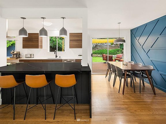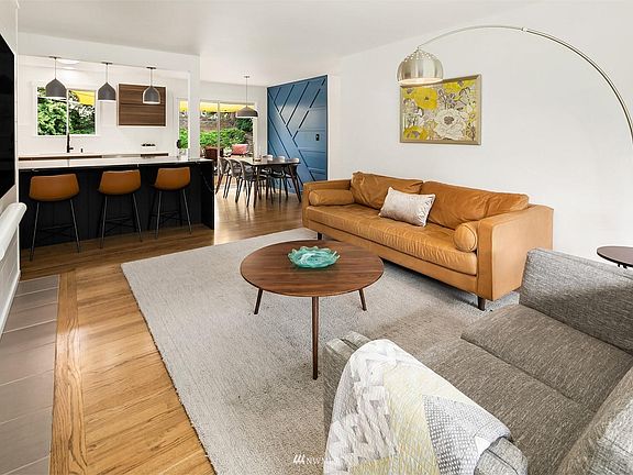 This amazing mid century modern home is located just off Juanita Drive on a quiet street in the boutique neighborhood of Arrowhead Point. You will love the convenient location, neighborhood views of the lake and the sought after Arrowhead Elementary school, just 4 blocks away. Totally remodeled throughout, this home is move in ready! Brand new kitchen, new appliances and stunning solid surface counters make the center of the home dramatic and inviting. The addition of a spacious, primary bedroom and spa-like bathroom with heated floors make room for today's lifestyle. Hardwood floors, new doors and trim, new lighting and bright white paint make this home fresh and bright. Private and flat back yard for entertaining. Smart home enabled, too!